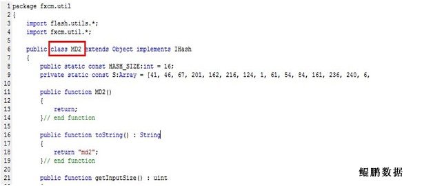 将登录表单所在的SWF文件进行反编译,查看AS代码,发现名为MD2的HASH函数,如下图所示。