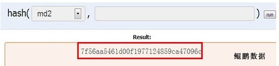 经谷歌查询得知MD2也是标准的HASH算法,通过在线MD2工具验证,上述password_hash值正是明文密码经过MD2 HASH后的结果,如下图所示。